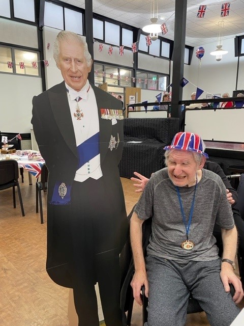 Accompanied by our brilliant team of staff, those residents who chose to attend enjoyed a delicious afternoon tea, music, games, and some fun with some life size cardboard cut-outs of the King and Queen! Much fun was had by all, as you can see from the fantastic pictures below!