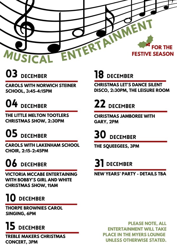Here's the itinerary for our festive entertainment at Corton House this December.